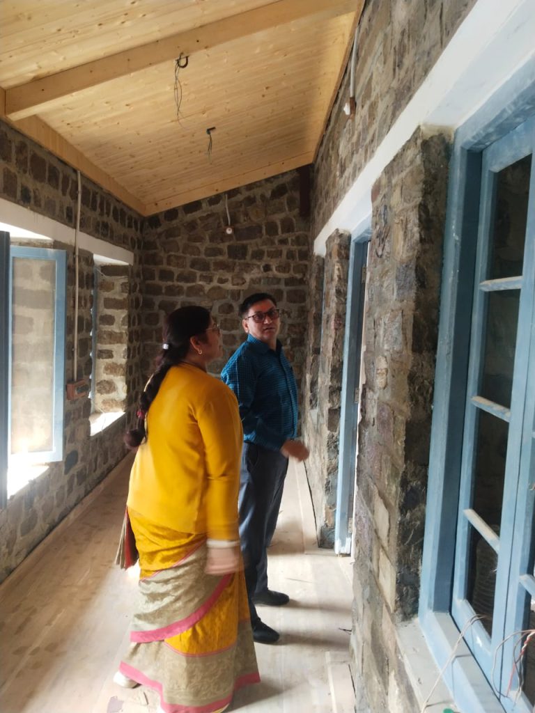 पुस्तकालय निरीक्षण के दौरान उन्होंने कार्यदाई संस्था ग्रामीण निर्माण विभाग से आए अधिकारियों से निर्माण कार्य की प्रगति की जानकारी ली।