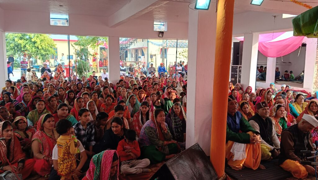 बिंदुखत्ता। यहां वन देवी मंदिर खुरियाख़त्ता बिंदुखत्ता में श्रीमद् देवी भागवत कथा के पांचवें दिन भारी संख्या में महिलाओं ने प्रतिभाग कर कथा का रसपान किया।