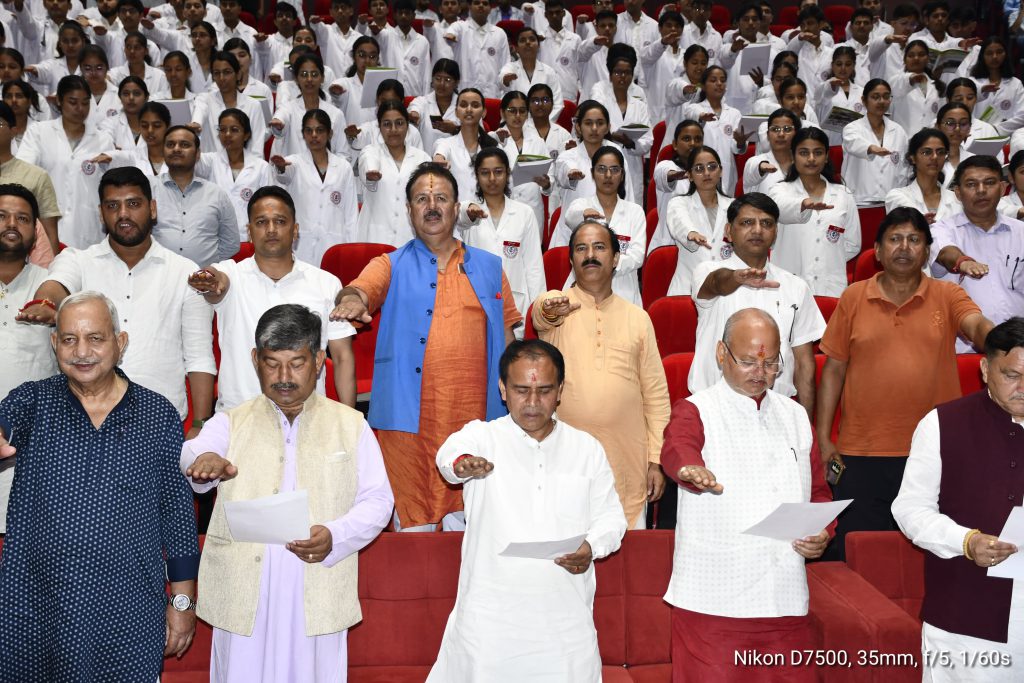 इस अवसर पर कॉलेज में प्रवेषरत वर्ष 2025 -26 के एमबीबीएस के कुल 125 छात्र छात्राओं को व्हाइट कोट पहनाने के साथ ही महर्षि चरक शपथ दिलाते हुए शुभकामनाएं दी।