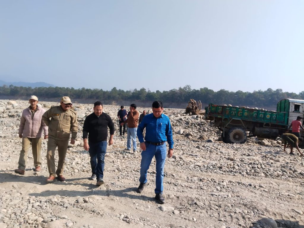 स्थलीय निरीक्षण के दौरान उपजिलाधिकारी राहुल साह, जिला खान अधिकारी राजभर सिंह, अधिशासी अभियंता सिचाई दिनेश रावत,अनुभाग अधिकारी वन निगम मोहन सिंह महरा व उपखण्ड अधिकारी वन अमित जोशी आदि मौजूद थे।