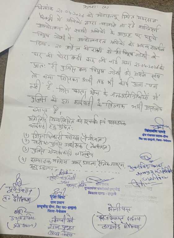 मंगलवार को कई ग्राम प्रधानों और क्षेत्र पंचायत (बीडीसी) सदस्यों ने एकजुट होकर लालकुआं कोतवाली पहुंचकर पुलिस प्रशासन के खिलाफ जोरदार विरोध दर्ज कराया और तत्काल रिहाई की मांग उठाई।