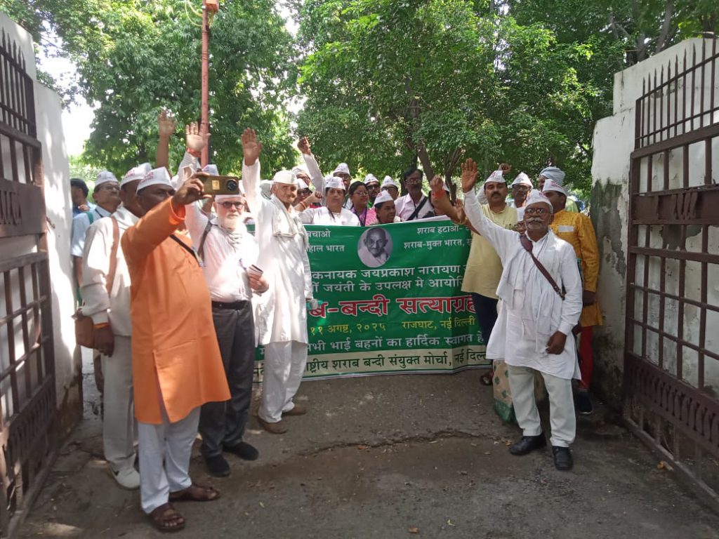 नई दिल्ली/रामनगर। देश में पूर्ण शराबबंदी लागू करने की मांग को लेकर देश के विभिन्न राज्यों के प्रतिनिधियों ने राष्ट्रपिता महात्मा गांधी की समाधि स्थल राजघाट पर प्रार्थना एवं संकल्प लेकर समाधि स्थल के बाहर सत्याग्रह किया तथा राष्ट्रपति को संबोधित ज्ञापन दिया।