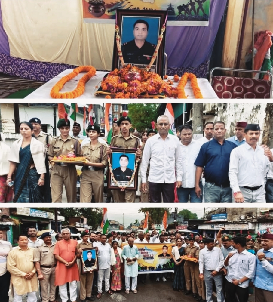 लालकुआं । *भारत माता की जय* उदघोष के साथ सैनिक कल्याण विभाग उत्तराखंड द्वारा संचालित शहीद सम्मान यात्रा भाग 2 आज गांधीनगर वार्ड नंबर 2 लालकुआं के शहीद नायब सूबेदार धर्मेंद्र कुमार गंगवार के घर से मिट्टी का कलश लेकर सैन्य धाम देहरादून को रवाना हुई।
