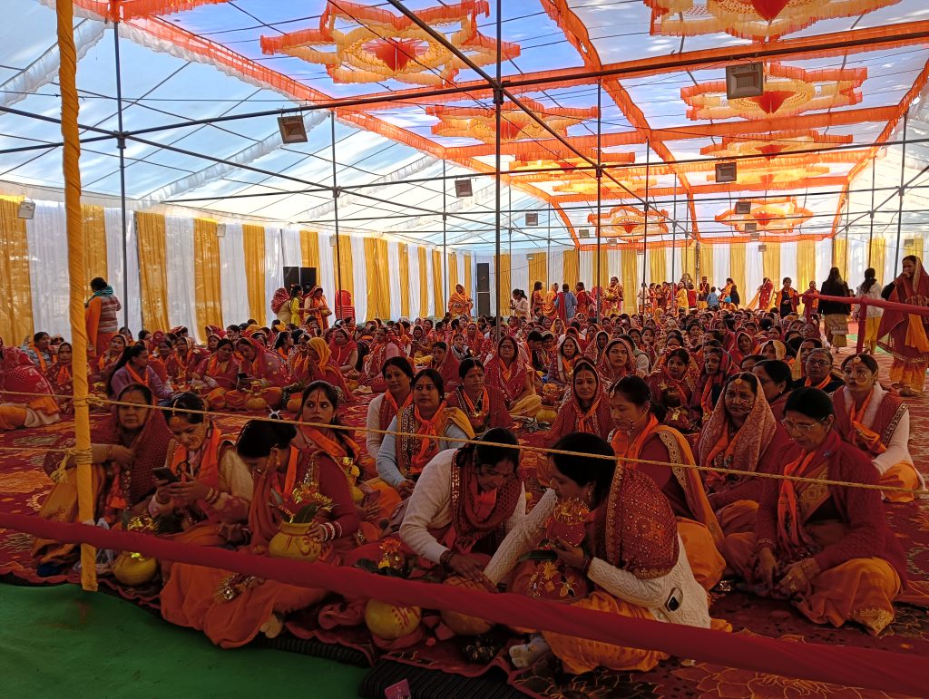 विशाल कलश यात्रा में भारी संख्या में महिलाओं ने भाग लिया, कलश यात्रा का जगह जगह पर शहर में स्वागत किया गया।
