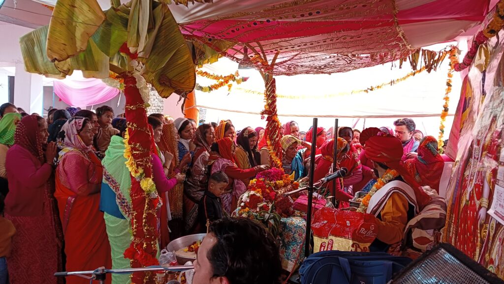 गत 18 फरवरी से चल रहे श्रीमद् देवी भागवत कथा में ब्यास कृष्णानंद जोशी द्वारा सुंदर कथा का वर्णन सुनाया जाता था।