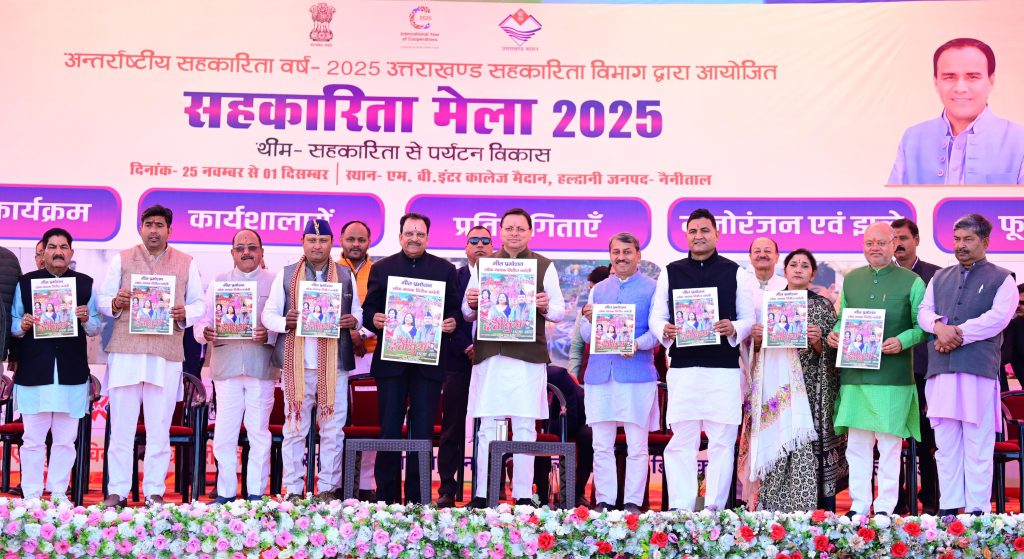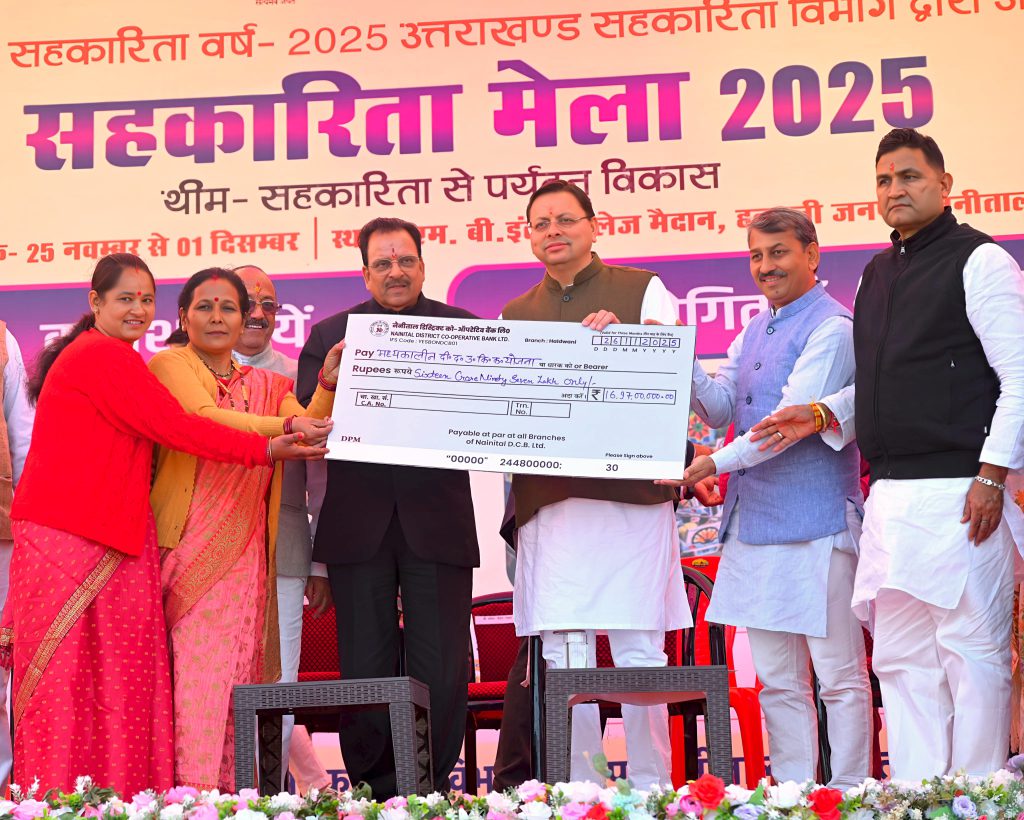 प्रदेश में 640 समितियों को कॉमन सर्विस सेंटर (CSC) के रूप में विकसित किया गया है, जो बीमा, पेंशन, बिजली बिल भुगतान, आधार सेवाओं सहित अनेक डिजिटल सेवाएं प्रदान कर रही हैं।प्रदेश की 5511 सहकारी समितियों में से 3838 समितियों का डेटा राष्ट्रीय सहकारी डेटाबेस पर अपलोड कर दिया गया है।मुख्यमंत्री धामी ने कहा कि सहकारिता क्षेत्र को मजबूत करने के लिए राज्य में 800 नए पैक्स का गठन किया गया है। मिलेट मिशन के अंतर्गत मंडुवा की एमएसपी बढ़ाई गई है, जिससे किसानों को अधिक लाभ मिलेगा।उन्होंने बताया कि दीनदयाल उपाध्याय सहकारिता किसान कल्याण योजना के तहत स्वयं सहायता समूहों की महिलाओं को पशुपालन, दुग्ध व्यवसाय, मछली पालन, फूल उत्पादन आदि कार्यों के लिए ₹5 लाख तक का ब्याज-मुक्त ऋण उपलब्ध कराया जा रहा है।महिला सहकारी समितियों और स्वयं सहायता समूहों को प्राथमिकता दी जा रही है। आज प्रदेश में लगभग 1 लाख 70 हजार महिलाएं “लखपति दीदी” बन चुकी हैं।मुख्यमंत्री ने कहा कि सहकारिता मेला पर्यटन विकास और स्थानीय संस्कृति व अर्थव्यवस्था को भी नई दिशा प्रदान करेगा।*हल्द्वानी में हो रहे विकास कार्य*मुख्यमंत्री ने बताया कि हल्द्वानी और आस-पास के क्षेत्रों में अनेक विकास परियोजनाएं तेजी से चल रही हैं—हल्द्वानी में कैंसर संस्थान का निर्माण तेज गति से जारी।करोड़ों की लागत से रिंग रोड और हल्द्वानी–लालकुआं बायपास का निर्माण प्रगति पर।हल्द्वानी नगर निगम क्षेत्र की सभी सड़कों का सुधारीकरण।पंतनगर एयरपोर्ट को अंतरराष्ट्रीय हवाई अड्डे के रूप में विकसित करने हेतु 1000 एकड़ भूमि स्थानांतरित, ग्रीनफील्ड एयरपोर्ट का निर्माण शुरू।जमरानी बांध परियोजना तेजी से आगे बढ़ रही, जल संकट का समाधान होगा।हल्द्वानी–मुंबई के बीच लालकुआं एक्सप्रेस ट्रेन शुरू।देश का पहला एस्ट्रो पार्क हल्द्वानी में बन रहा है।उत्तराखंड का पहला खेल विश्वविद्यालय हल्द्वानी में स्थापित होने जा रहा है।लिगेसी वेस्ट प्रबंधन, सीवेज ट्रीटमेंट प्लांट और सॉलिड वेस्ट मैनेजमेंट परियोजनाओं की शुरुआत।450 वाहनों की क्षमता वाली बहुमंजिला पार्किंग का निर्माण जारी।उधमसिंह नगर में हल्द्वानी से लगे क्षेत्र में इंडस्ट्रियल स्मार्ट सिटी का विकास प्रगति पर।*कानून-व्यवस्था और प्रशासनिक सुधार*मुख्यमंत्री ने कहा कि—प्रदेश में सख्त धर्मांतरण कानून लागू किया गया है।10,000 एकड़ से अधिक सरकारी भूमि को लैंड जिहाद से मुक्त कराया गया।250 से अधिक अवैध निर्माण हटाए गए।शिक्षा सुधार के तहत मदरसा बोर्ड समाप्त किया गया।“ऑपरेशन कालनेमि” के तहत छद्मभेषधारियों पर सख्त कार्रवाई जारी।देश का पहला समान नागरिक संहिता उत्तराखंड में लागू किया गया।देश का सबसे सख्त नकल विरोधी कानून ला