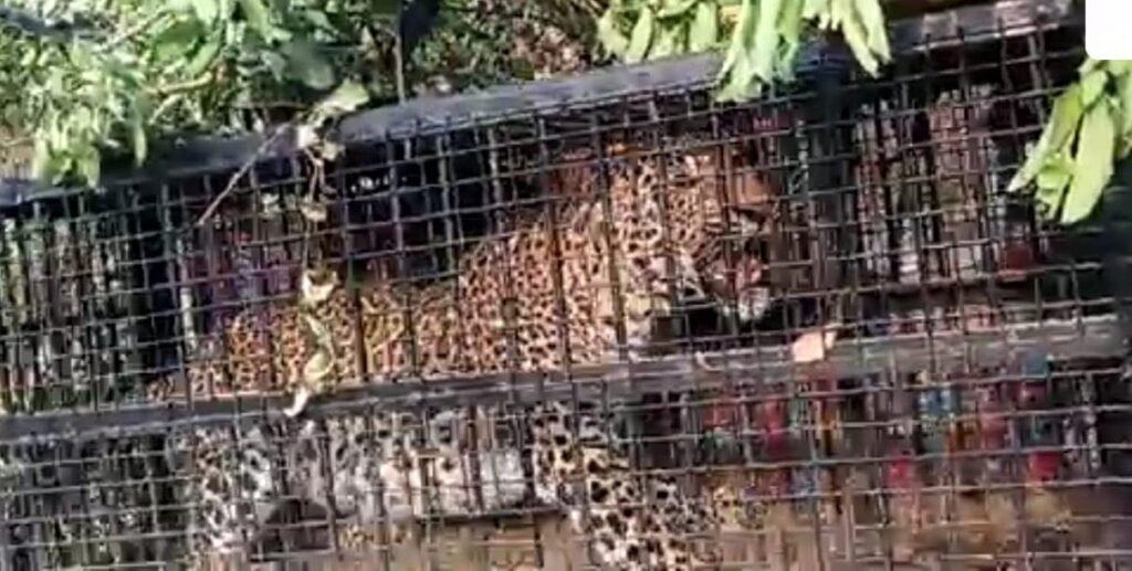 भीमताल। ब्लॉक के मोरा गांव में कैद हुआ गुलदार भीमताल ब्लॉक के ग्राम बलूटी तोक मोरा में पिजड़े में वन विभाग की कड़ी मशक्कत के बाद सुबह कैद हुआ गुलदार वन विभाग को बड़ी सफलता मिली है ग्रामीणों ने कुछ राहत की सास ली है ।