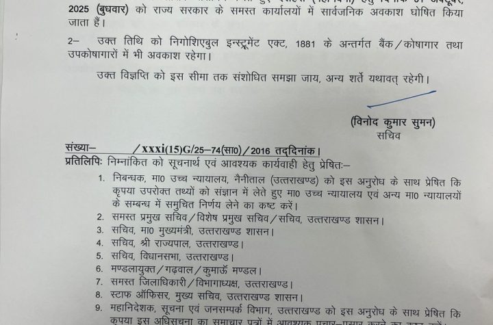 देहरादून। उत्तराखंड सरकार ने दशहरे का अवकाश घोषित किया है। इसकी अधिसूचना जारी कर...