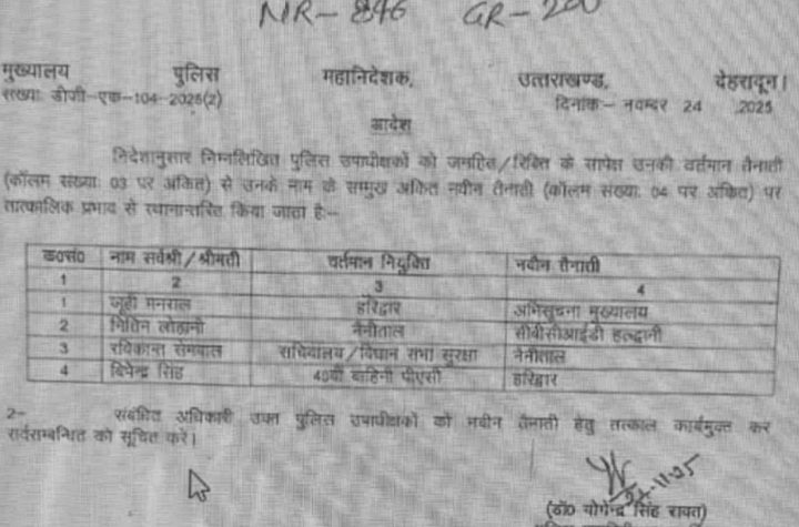 देहरादून। उत्तराखंड शासन ने चार सीओ इधर से उधर भेजे हैं जिनमें नितिन लोहनी...